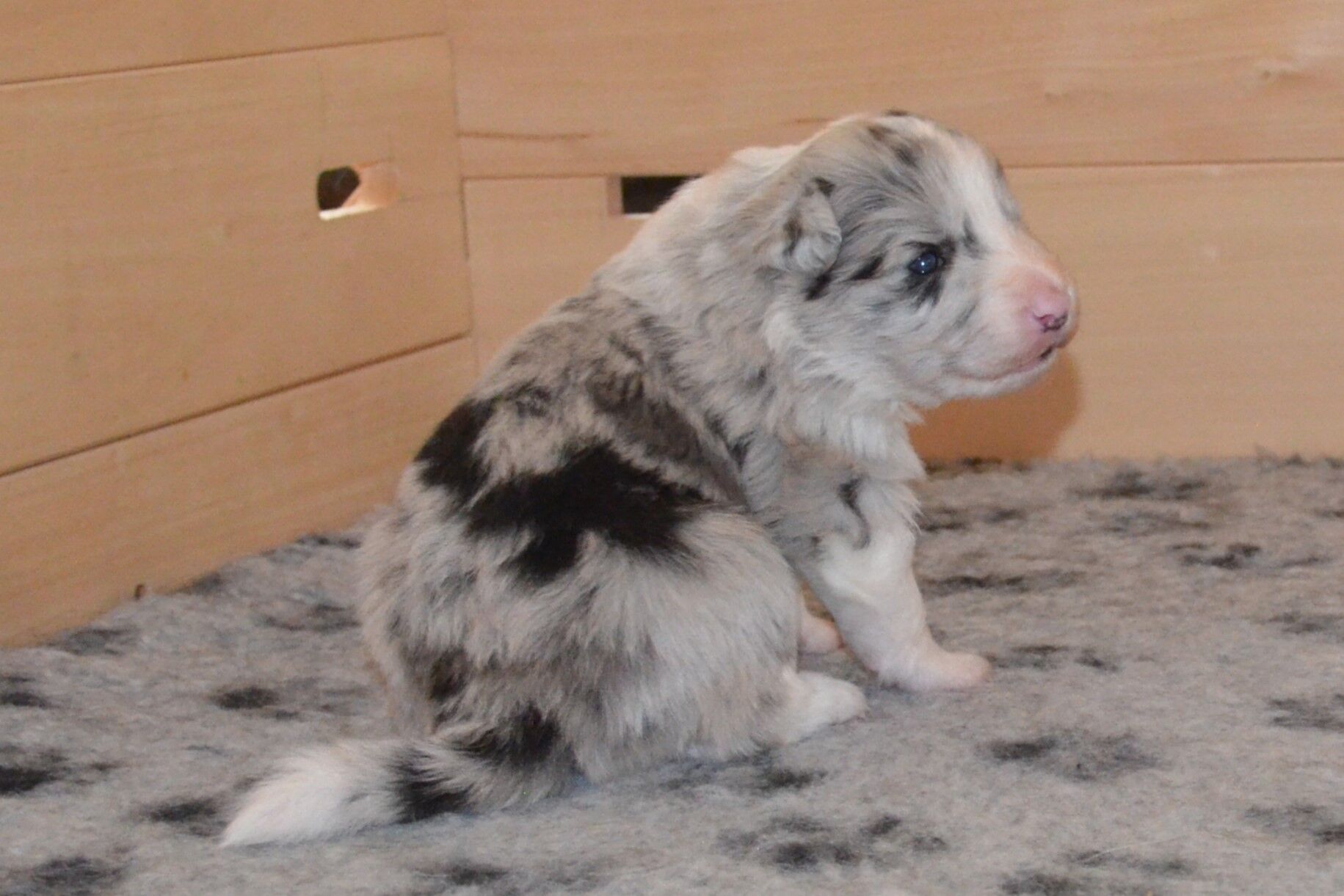 Dne 19.1.2024 se nám narodila tři krásná štěňátka. Dvě fenky - černobílá a blue merle a pejsek blue merle.